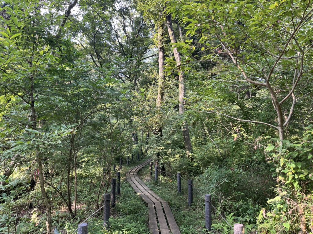 池周辺の森は、湧き水によって周辺環境より気温が低く