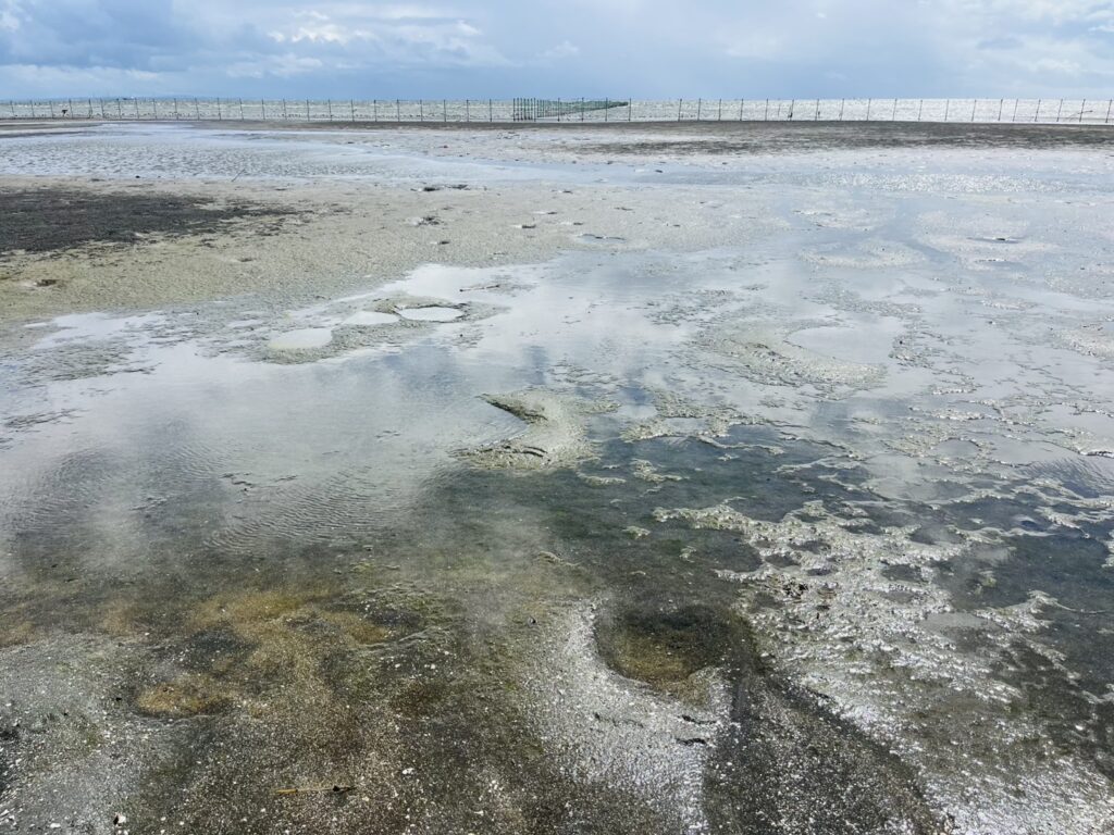 潮が引いてて、本来海の部分を結構歩けました