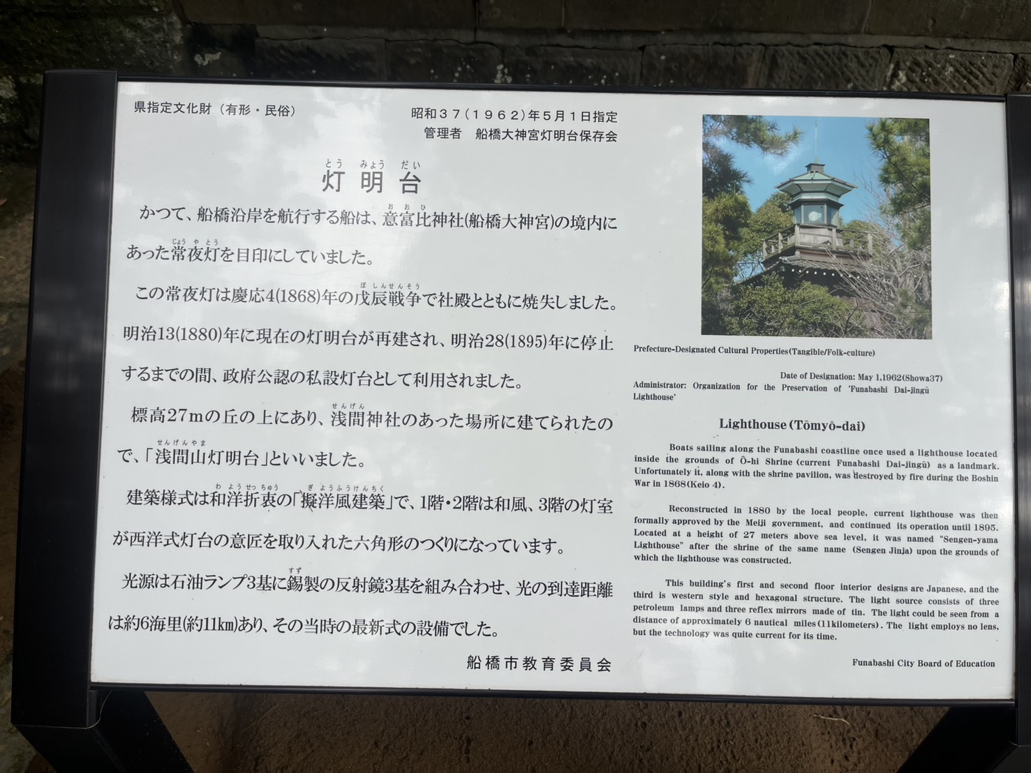 現存の中では、国内最大級の民間灯台と言われ、千葉県の指定有形文化財になっています