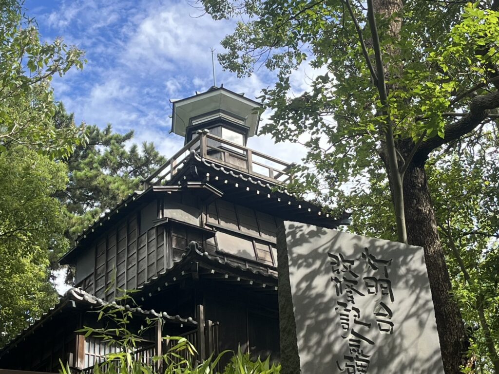 境内には1880年(明治13年)に建てられた高さ12mの灯明台があります